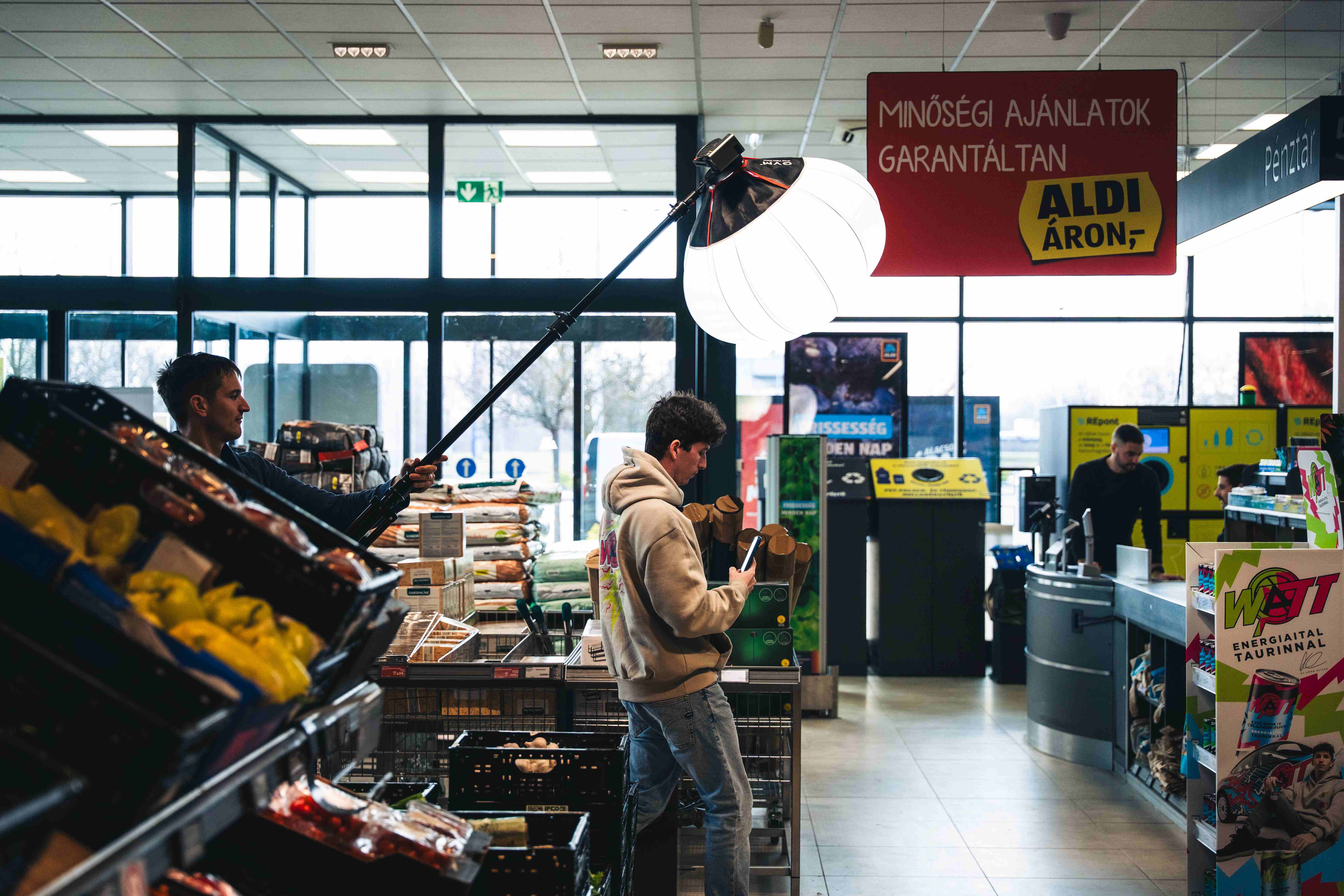 Az ALDI-ban forgatott reklám itt tekinthető meg: