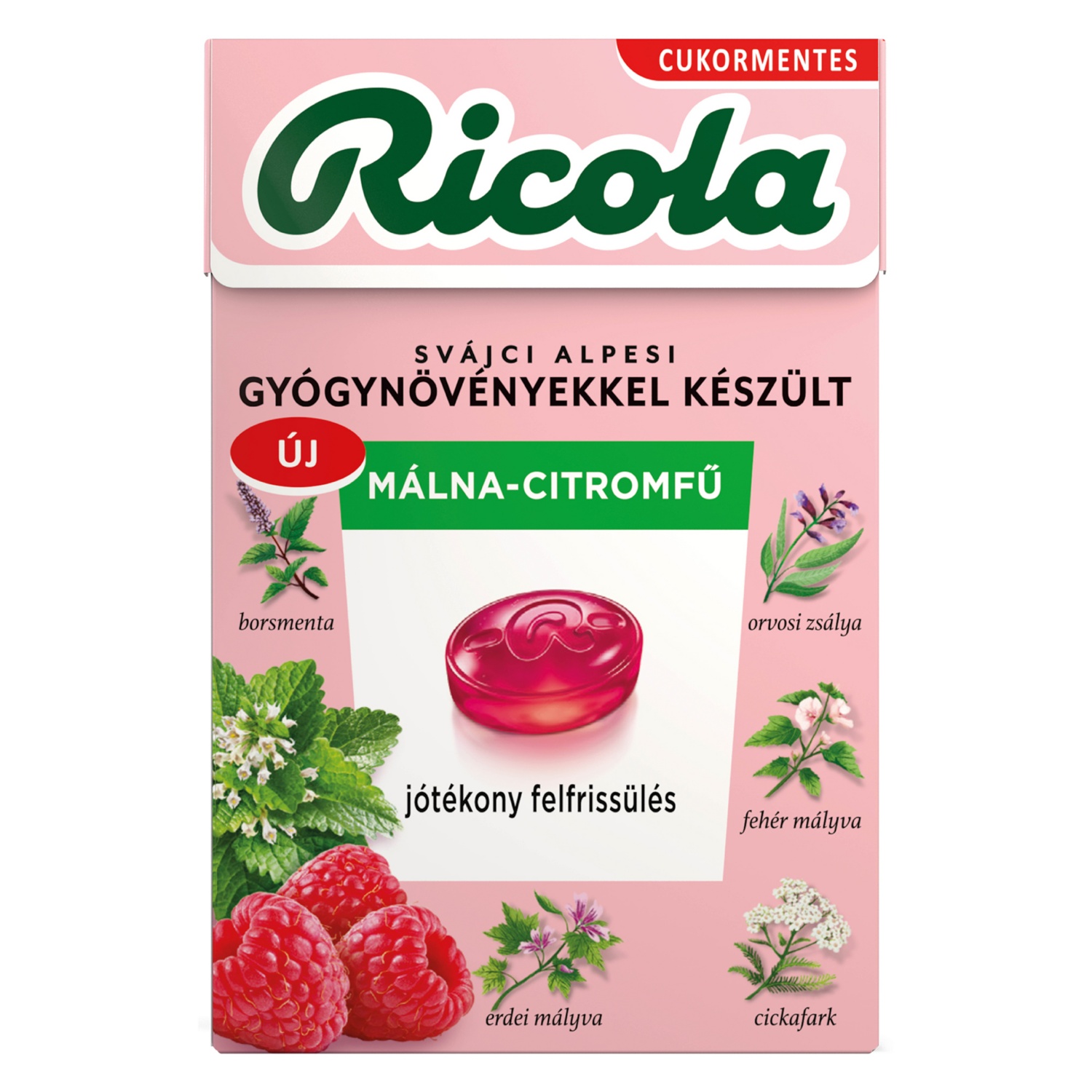 RICOLA Cukormentes cukorka, málna-citromfű, 40 g