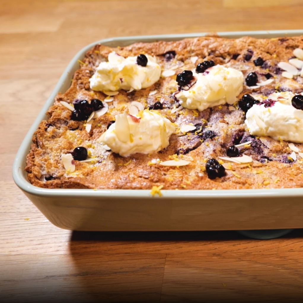 - A fehérjét 50 g cukorral habbá verjük, majd ezt is beleforgatjuk a kalácsos alapba. Hozzáadjuk még az áfonyát és a mandulát is, ezek után pedig a sütőformánkat kivajazzuk, beleborítjuk a masszát, egy spatulával elegyengetjük, majd megszórjuk maradék áfonyával és 150 fokon 50 perc alatt készre sütjük – félúton egy alufóliával letakarva.