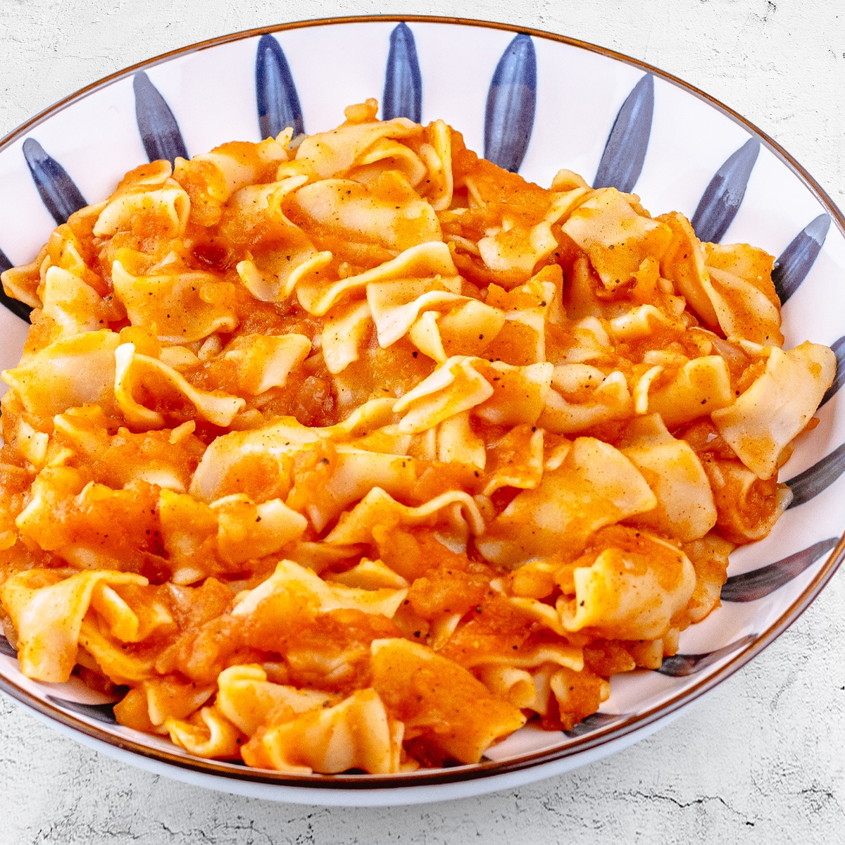 - A tésztát visszaöntjük az edénybe, hozzáadjuk a fűszeres burgonyát, alaposan összekeverjük őket, ízlés szerint tovább fűszerezzük és melegen tálaljuk.